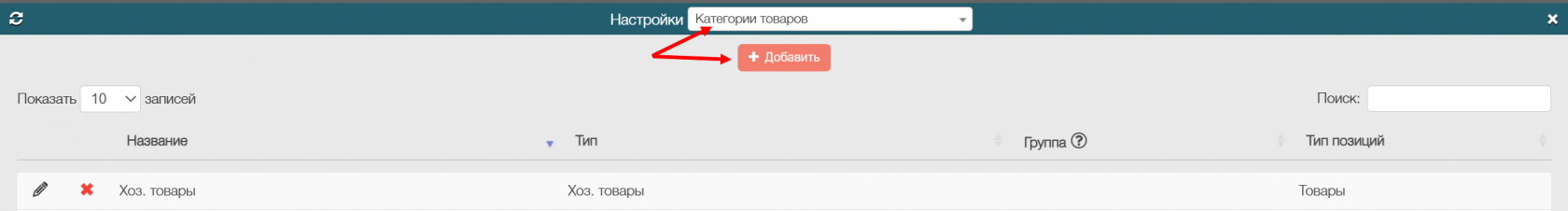 - название категории товаров, например, посуда/расходные материалы/алкоголь;