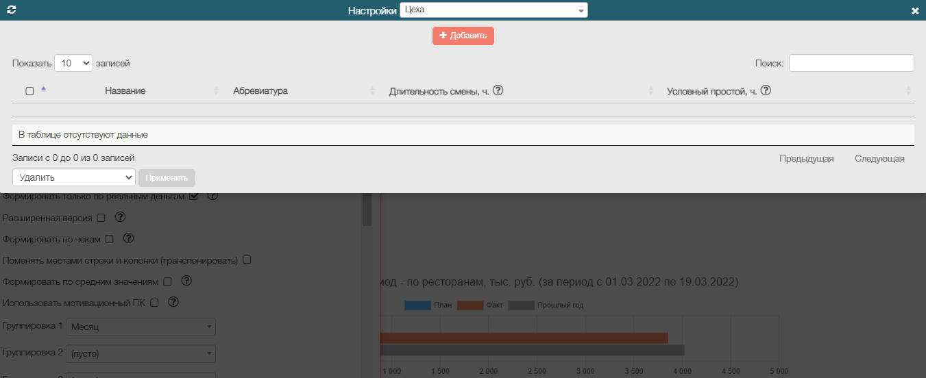 Выберите раздел “Цеха” - для удобства можно воспользоваться вводом текста: