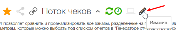 После сохрания отчёта при наведении на блок с названием, появится иконка с карандашом.