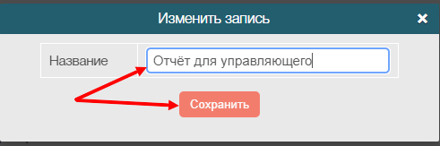 При нажатии на карандаш откроется модальное окно, где можно изменить название. После чего сохраняем.
